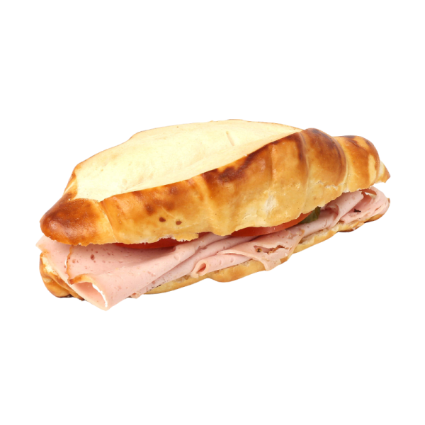 Unser Laugenparisettli gefüllt mit Butter, Lolosalat, Fleischkäse, Salatgurken und Tomaten.