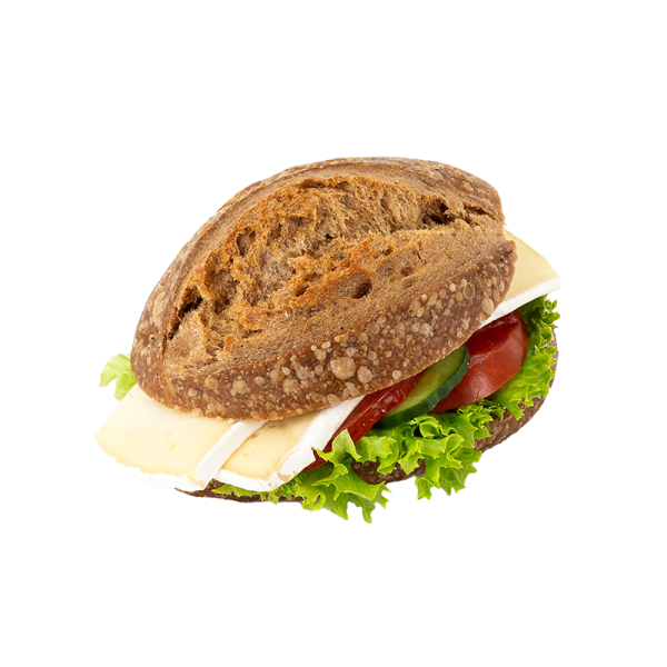 Unser Urdinkel-Baguette gefüllt mit Butter, Lolosalat, Brie, Salatgurken und Tomaten. Eine köstliche und rustikale Kombination.