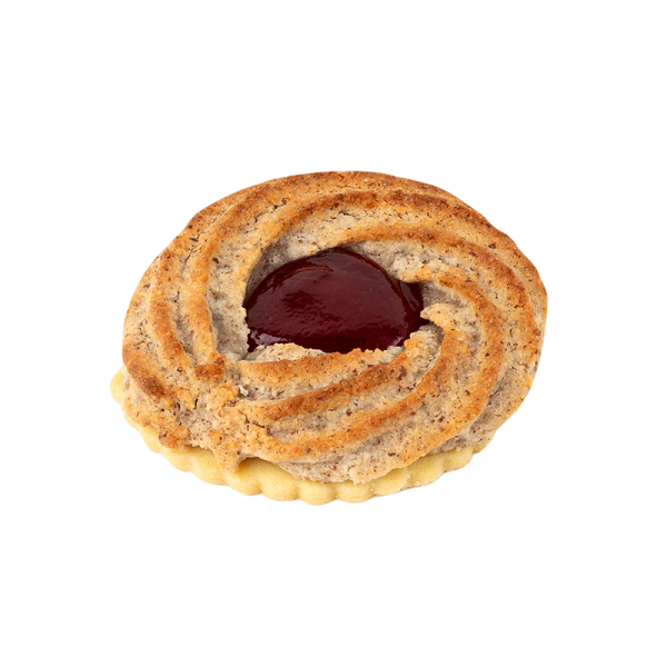 ZUCKER, HASELNUSS, WEIZENMEHL, EIER FREILAND, BUTTER, GLUCOSESIRUP, INVERTZUCKER, HIMBEEREN, Feuchthaltemittel E 420, GELIERMITTEL (APFELPEKTIN), Farbstoff nat. Konzentrat aus Gemüse, WEIZENGLUTEN, GERSTENMALZMEHL, SPEISESALZ, E503II, Trägerstoff (E 504, E 1520, E 1518), Geliermittel E 415, AROMA, Süßungsmittel E 422
